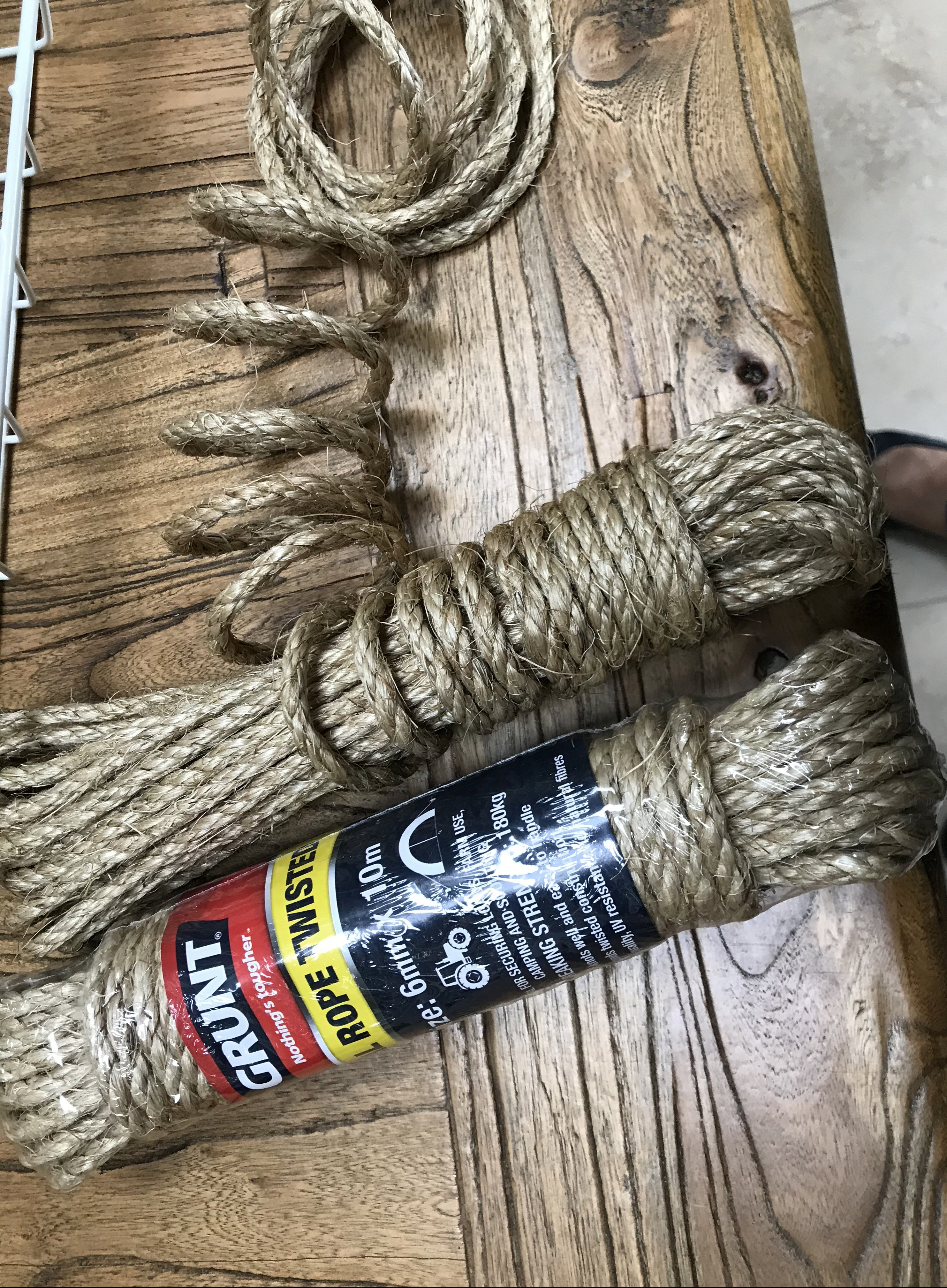 Here is the old basket which is big enough to store wood. The rope which I purchased from the local hardware shop in 10mt shanks. I bought 5. Having never done this before I needed to see how to join in a new piece so I had a close look at a rush basket to see how they joined the lengths. Easy!